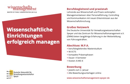Kompakt-Info zum M.P.A. Studiengang Wissenschaftsmanagement in Speyer